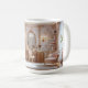 Elegant beige and gold baroque mug with vintage mirrors and warm light, perfect for cozy coffee rituals and classic interiors.