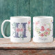 Taza De Café Elegante acuarela Floral Mariposa Monograma H