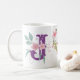 Taza De Café Elegante acuarela Floral Mariposa Monograma J