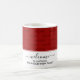 Elegante Crimson Oscuro BIENVENIDA a NUESTRA taza de café de invitados de casa con texto de personalizable para que puedas crear tu propia bienvenida y/o agregar tu nombre, por ejemplo. Bienvenidos a nuestra casa de huéspedes, etc. La elegante tipografía con guiones y el sutil embaldosado que le dan la bienvenida hacen de esta taza de café de la hospitalidad roja y blanca una elegante incorporación para su estancia en casa, en su casa de huéspedes o en la recepción de negocios. Disponible en otras tendencias y colores populares. Encontrará libros de invitados y otros regalos disponibles. Podrá elegir entre una amplia selección de regalos de bienvenida y hospitalidad diseñados por Berean Designs.