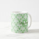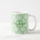 Taza De Café Elegante Damasco Verde y Blanco con Sage monograma