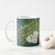 Buenas mañanas con un encantador té floral o taza de café. Regala esta taza personalizada de Zazzle a alguien especial o date un capricho con un diseño que te alegre el día. En un llamativo fondo verde con acuarela de flores blancas y su nombre en escritura. Si tienes preguntas de diseño, sólo tienes que enviar una charla y estaremos encantados de asistirnos.