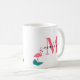 Elegante Monograma Hojas Tropicales Flamingo Coffee Mug Rosado Caliente