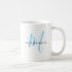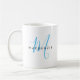 Taza De Café Elegante Monograma moderno con guión azul cielo