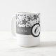 Monograma elegante y patrón floral. Este patrón blanco y negro monogramado de Olovia mug es el regalo perfecto para ella. El diseño presenta un diseño clásico de tonos grises y negros. Personaliza la taza con su nombre o apellido.