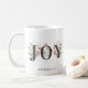 Esta elegante y festiva taza de vacaciones presenta la palabra JOY acentuada por la hermosa vegetación acuática y las bayas sobre un clásico fondo blanco. Personalizar con tu propio nombre o texto. Esta hermosa taza de vacaciones hace un fabuloso regalo para la familia y los amigos.