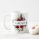 Taza De Café Elegante nombre floral en acuarela burdeos