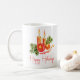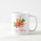 Elegante Velas Holly deja feliz café Mug. El diseño de esta acuarela presenta velas de color rojo persa con hojas verdes y adornos decorativos. Un gran regalo para la familia y los seres queridos para los Navidades.