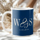 Taza De Café Elegantes parejas de bodas iniciales azul marino