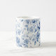 Arroz azul y blanquecina, flores y follaje sobre fondo blanco antiguo.