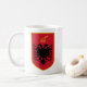 El emblema de la República de Albania (albanés: Stema e Republikës së Shqipërisë) es una adaptación de la bandera de Albania. Se basa en la bandera y el sello de Gjergj Kastrioti Skanderbeg. El escudo sobre la cabeza del águila de dos cabezas es el casco de Skanderbeg, coronado con cuernos de cabra. Se considera que el águila viola la regla convencional de la tintura, que prohíbe colocar un color (es decir, una tintura oscura) sobre otro color.