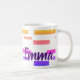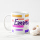 Emma / Añade tu nombre Té Tea Tea Cup para añadir a tu colección de productos de bebidas. Un regalo fresco / idea de regalo para todos los amantes del diseño personalizado, vibraciones positivas, colores alegres brillantes, minimalismo, arte abstracto etc. Cambie el color de fondo (blanco) para que se adapte a su gusto y estilo. Amarillo, púrpura, rosa.