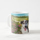 Taza De Café Empanada en un campo de las dalias (perro en la