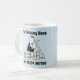 Regalo promocional de Empresa de Servicios de Edificación. Dibujo animado de Constructores y Servicios de Edificación en una taza. Agregue el nombre y número de teléfono de su empresa de Servicios de Edificación. Ideal para constructores y contratistas de construcción y cualquier persona que trabaje en la industria de la construcción. Fondo azul.