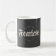 Mug clásica cristiana con escritura gótica gris claro sobre fondo negro. Empieza tu día con tu cuppa favorita y recuerda con Dios que no tienes miedo ni estás solo. Verso de la Biblia: En Dios no tengo miedo 2 Tim 1:7