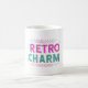 Una fuente divertida y multicolor para la frase "Retro Charm" en una camiseta de inspiración vintage.