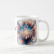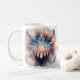 Representación surrealista de la energía cósmica radiante de las manos, rodeada de vibrantes y coloridos remolinos celestes.