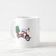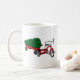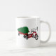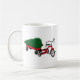 Entrega de árbol de Navidad en un pequeño vagón rojo, estilo triciclo. Un regalo retro muy lindo.