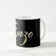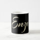 Eine sehr schöne edle personalisierte Tasse / Kaffeetasse / Teetasse im whitegold Lettering Look auf schwarz für Enzo.