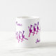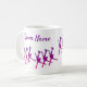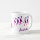 Mug de patinaje sincronizado púrpura - un útil regalo del equipo de sincronizado para un buen comienzo del día.Colores: Degradado púrpura a rosa caliente.Diseño: 3 patinadores haciendo arabescos + personalizar con el nombre del patinador de hielo + personalizar con el nombre del equipo de sincronizado.