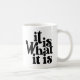 Es lo que es una taza de café, es lo que está diciendo es una taza divertida con humor.