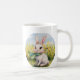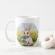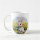 Esta es una taza con un conejo lindo sentada sobre ella. Que tengan un día feliz