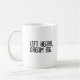 Una taza con el eslogan motivador "Levanta fuerte, sueña grande" en una tipografía de texto negro de una sola fuente.