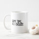 Una taza con el eslogan motivador "Tiempo de gimnasia, sin excusas" en una tipografía de texto negro de una sola fuente.