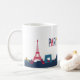 Diseño que presenta el paisaje parisino con los edificios clásicos y monumentos culturales.