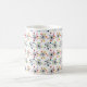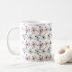 Esta taza tiene un diseño moderno de mediados de siglo de estallidos esparcidos por todas partes con círculos al final.