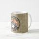 El tazón de café clásico presenta un fondo burlap falso con sello estilo de viaje de la escena de Tennessee.