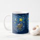 Los colores revoltosos bailan en el cielo nocturno con la luna, las estrellas y un búho. Por Paxdomino