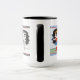 La mitad de esta taza estupenda del dibujo animado del chica está en color y la otra mitad es blanco negro, ambo lado tiene burbujas del discurso que usted puede poner su texto adentro. Un poco como, antes del café (blanco y negro) y después del café. :) (el lado colorido!)