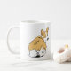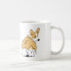 La parte trasera del Corgi en su cara mientras que usted bebe el café