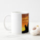 Una madre chita y sus tres cachorros se conforman para la noche mientras el sol se pone detrás de ellos. Sus siluetas se oponen marcadamente a los colores llamativos de la puesta de sol. Arte por computadora de Kathie Miller.