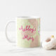 Puedes personalizar el nombre en esta elegante jarra de elefantes inspirada en la India. Los colores de la taza son rosa y verde. El tierno elefante está decorado con estilo con un toque indio o asiático sudeste. Diversión para chicas.