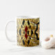 Motif géométrique de base étoilée à 8 branches, doré avec reflets de lumière, un peu de noir et rouge foncé pour l’arrière plan qui transparaît dans certaines dentelles du modèle.