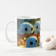 Pequeños espíritus lindos sentados juntos escuchando una historia espeluznante en el cementerio por la noche.