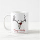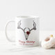 Esta taza de vacaciones del suroeste presenta un ilustracion hecho a mano de un cráneo de ciervo adornado con rosas rojas. Todo el texto es editable. Personaliza con tu apellido. Impreso en ambos lados.