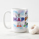 La imagen muestra la palabra "FELIZ" escrita en letras coloridas y peludas, cada una con su propio matiz vibrante. La "H" es púrpura, la "A" es rosa, la "P" es azul, la "P" es naranja y la "Y" es amarilla. Algunas letras tienen caras y miembros personalizados, añadiendo un toque divertido y animado. La "H" hace un gesto a mano, mientras que una de las olas de la "P" es alegre. Las "A" y las "Y" tienen piernas con zapatos, lo que aumenta su apariencia animada. El telón de fondo está formado por un cielo de colores pastel con nubes onduladas y estrellas brillantes que crean un ambiente alegre y caprichoso. La composición general exuda alegría y positividad, lo que lo hace perfecto para diseños que evocan felicidad y diversión.