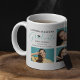 Una moderna taza de café de graduación con colaje de fotos, con 3 fotos y texto editable, regalo perfecto para cualquier familiar graduado. El estilo de fuente del texto, tamaño y color se pueden cambiar haciendo clic en el enlace personalizar más después de personalizar.