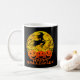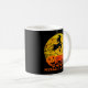Graciosa Bruja Feliz Halloween En La Bambalina Con Esta Cuidada Calabaza Sonriente Detrás De La Luz Amarilla Brillante De La Luna Con Bats Voladores Y Silhouette Trees Y Lady Witch.