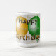 Esta taza feliz cumpleaños brillante y alegre con globos verdes y dorados es un gran regalo de cumpleaños para los empleados.