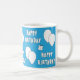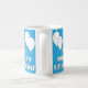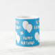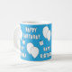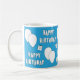 Una taza con un cumpleaños feliz y globos sobre un fondo azul. Personalizar el fondo azul entre otras opciones.