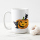 Cuidar dos gatitos negros con una linterna Jack O, y decir es Feliz Meow'lloween - que es personalizable a lo que te diga siempre que quieras - Trick o Treat - Perfecto para beber tu cacao caliente en una fría noche de Halloween