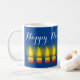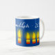 Simbolizar el milagro de Hanukkah: nuestro diseño muestra las nueve velas, simbolizando el milagro de Hanukkah. Las llamas brillantes contra el azul real profundo son una representación visual de la alegría y la luz que trae esta fiesta. Ocho velas simbolizan el número de días que la linterna del Templo encendió; el noveno, el shamash, es una vela de ayuda usada para iluminar a los demás. Personalizar la taza con el año en curso.