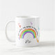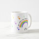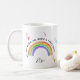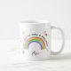 Una taza colorida con arcoiris y corazones de amor que puedes personalizar para tu amigo, un pariente o tu profesor, por ejemplo. Un diseño lindo y alegre escrito con "haces de mi mundo un lugar feliz" en tipografía de estilo a mano y escritura elegante.