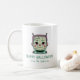 Esta taza de café de Halloween muestra un robot kawaii con un gráfico de color verde brillante, acompañado del texto "Halloween feliz". Divertido, lindo y perfecto para los favores de la fiesta de disfraces de Halloween, se puede personalizar fácilmente con tu nombre, familia o mensaje de personalizado en el campo "de". ¡Celebra la temible temporada con estilo!