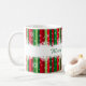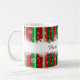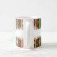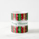 Feliz ilustracion navideño con decoración de copos de nieve sobre fondo coloreado a rayas