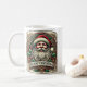 Una taza festiva con un emblema de la temática de los Navidades con Santa Claus, hojas huecas y patrones de vacaciones clásicos, perfecta para difundir alegría de temporada con cada sorbo.